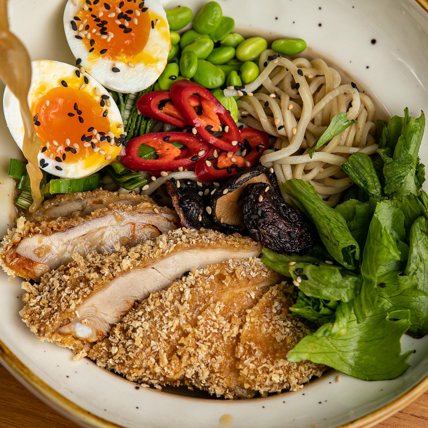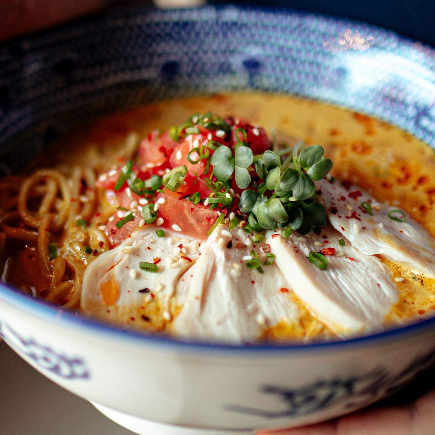 豚骨スープはちょっと・・・というお客さまもご安心ください!当店はサッパリ系の鶏がらスープもご用意しております!まろやかで風味豊かなこだわりのスープとなっております