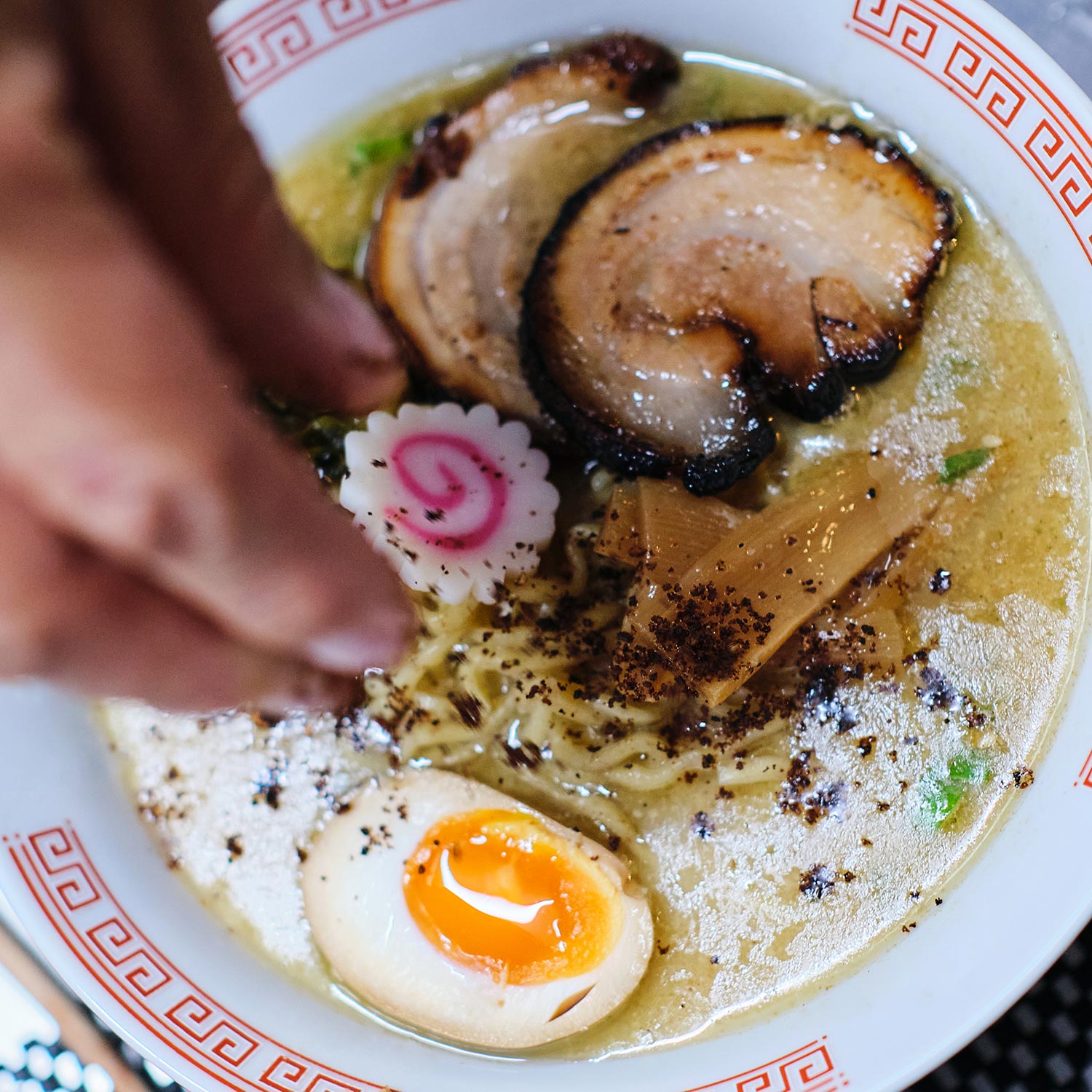 静岡ではまだ珍しいかと思われる、鯛スープのラーメン。鯛のほぐし身をトッピングしたスープに、ご飯を投入して「鯛茶漬け風」にした楽しみ方も出来ます!ぜひお試しください!